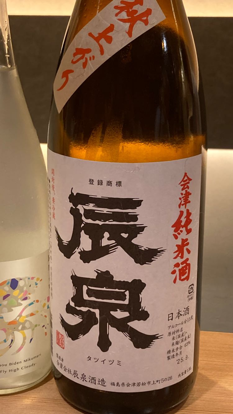 会津若松市の辰泉酒造の「純米吟醸辰泉ふなまえ酒 辰ラベルNo.1」というもの。日本酒度が「マイナス3」とあり、予想通りのフルーティな味わい。この蔵は初めてですが、気に入りました。