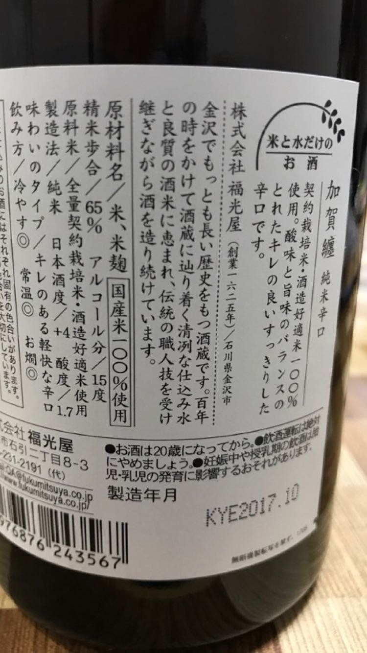 金沢 福光屋 純米