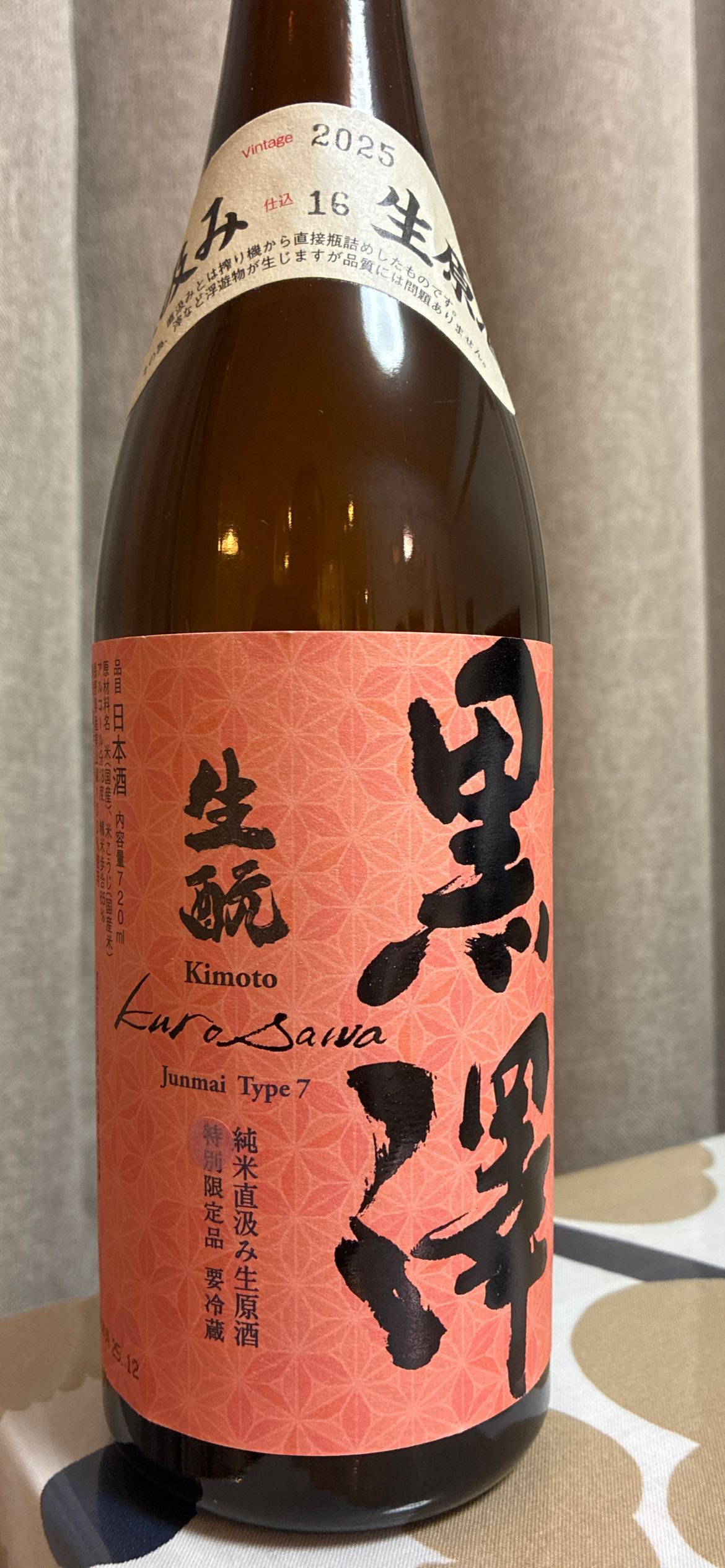 9638+80=クロサワハマる。敢えて磨くことを選ばず2割という低精白での生もと造り。お米の旨味と生もと由来の厚みのある味わいが絡み合う濃醇なお酒。