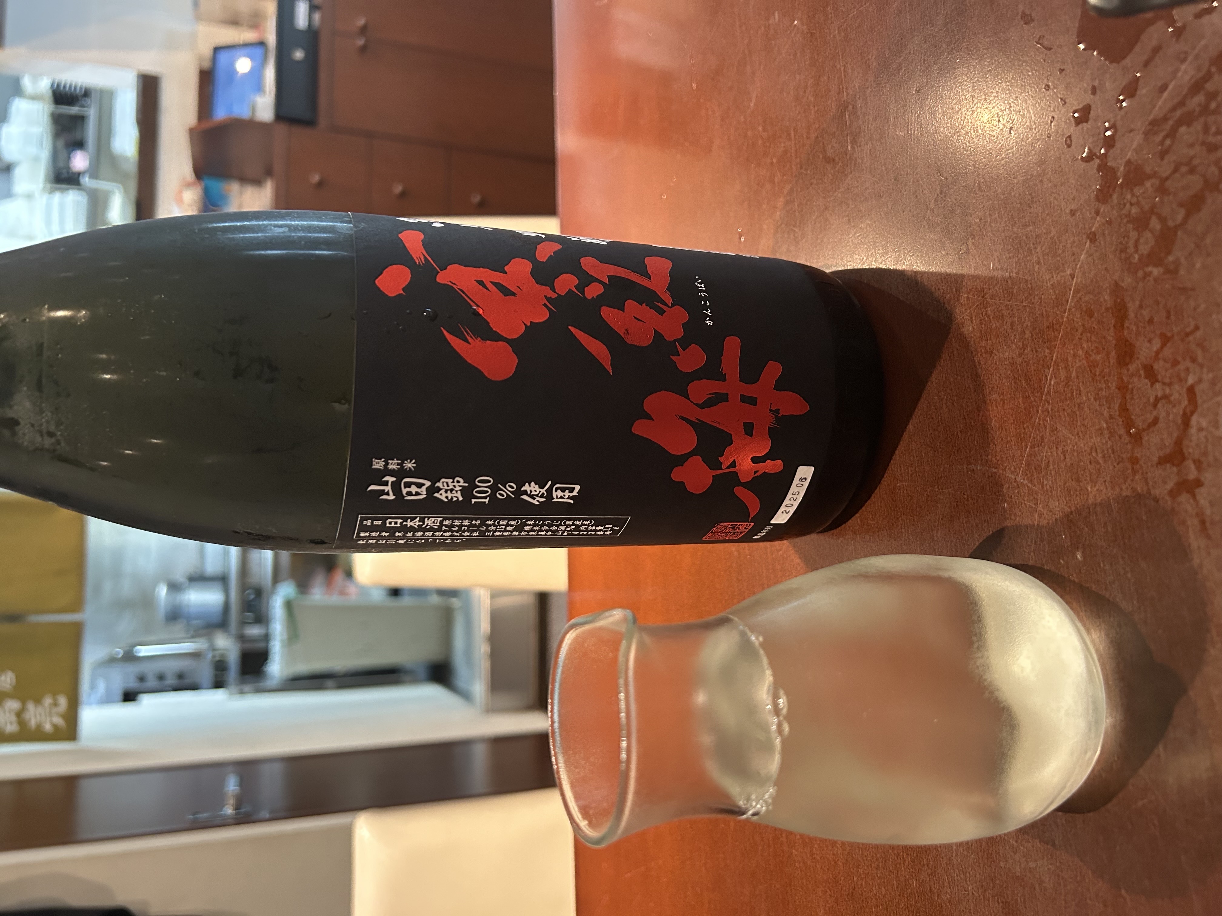 甘口かと思いきや、フィニッシュは余韻を引く優しい苦味。飛露喜は後味が赤ワインの渋みのような気がしたけど、それと感覚的に近い、こっちはレモンのような苦味と酸味が後味