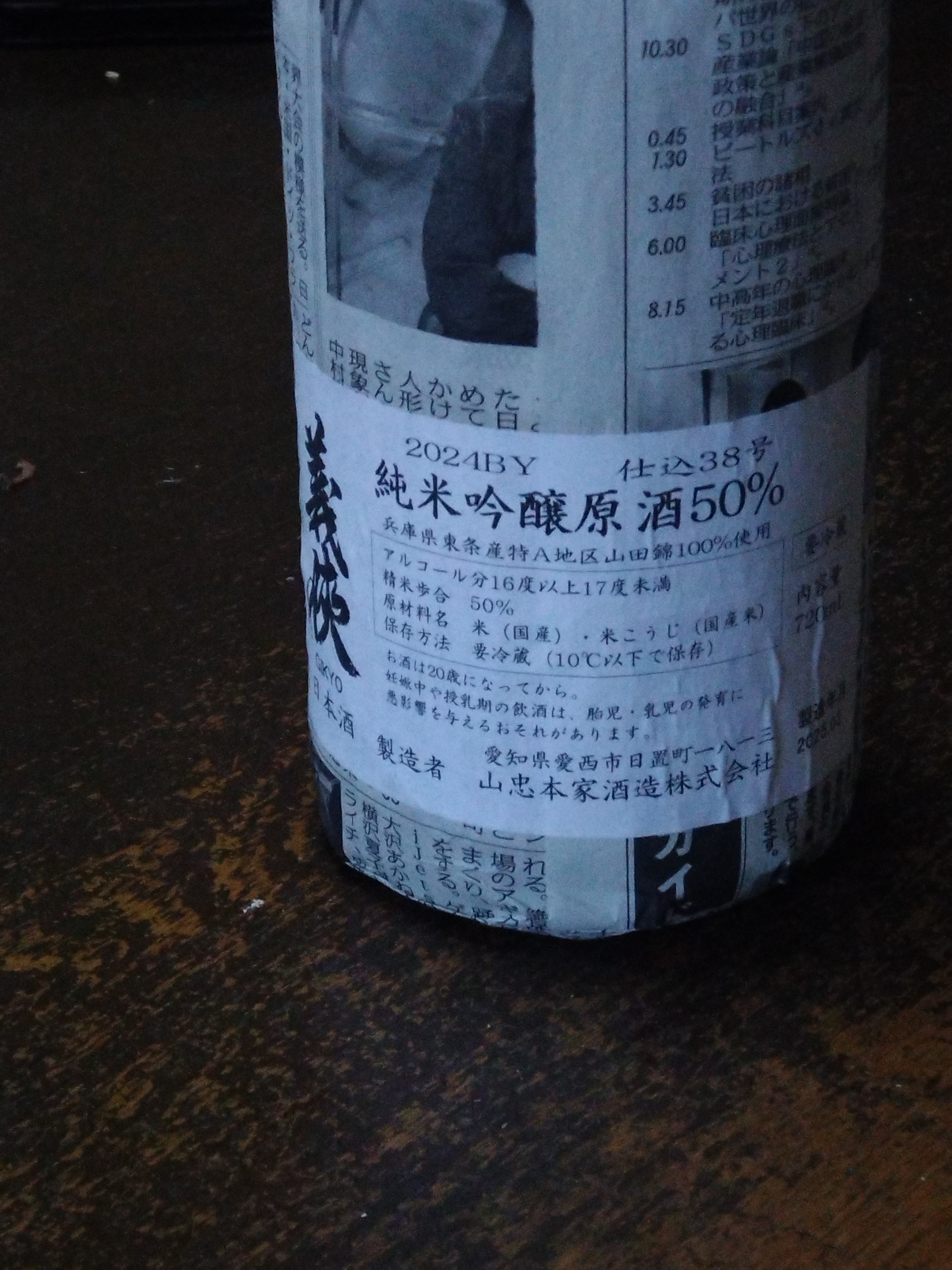 純米原酒60%。山田錦。