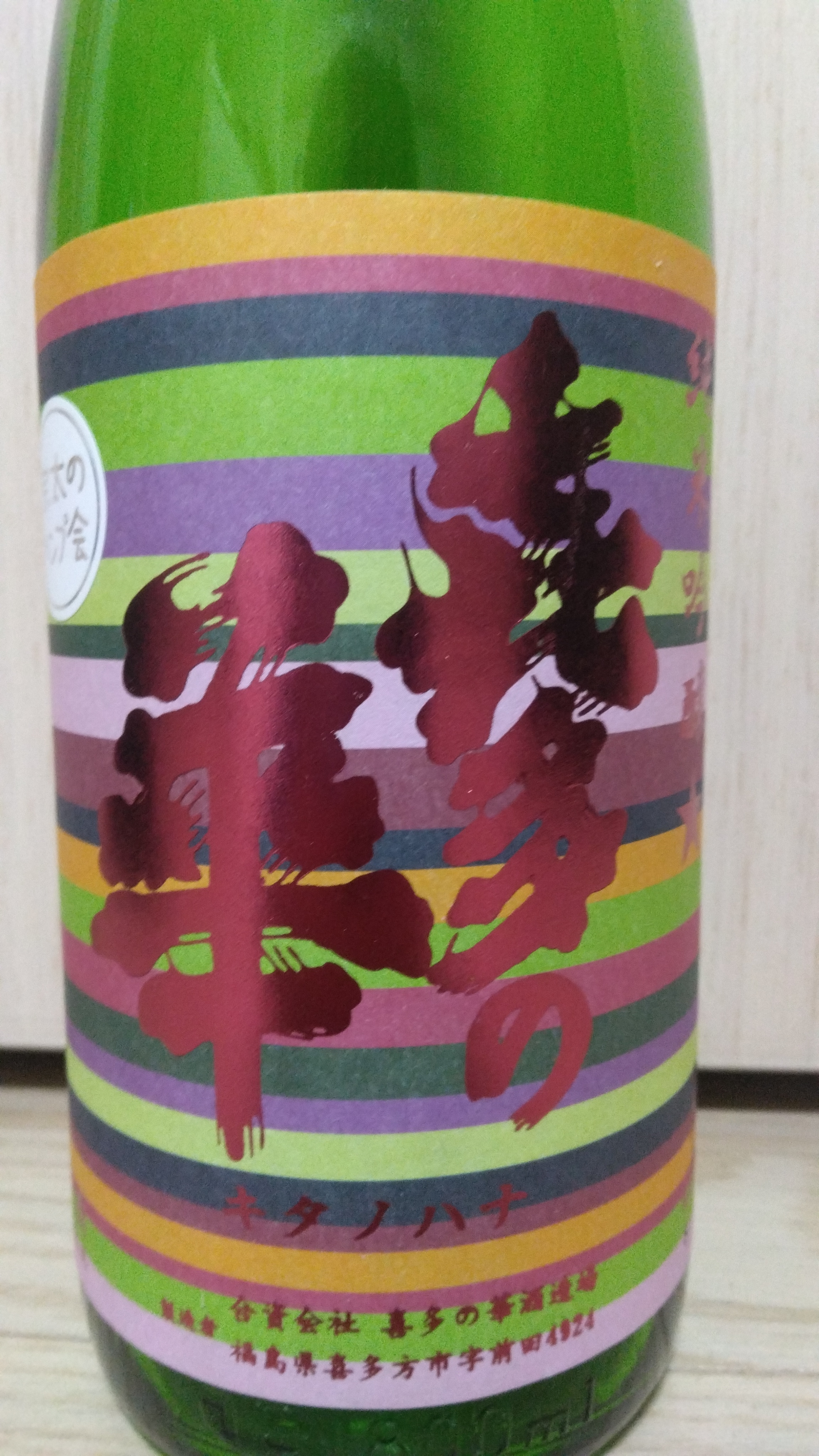 なかなか美味しい。喜多の華の漢字が異なりラベルもクラシックな雰囲気だったので、古酒とも知らずに購入。ちょうど10年前の平成26年度醸造で、10年前にしていた事を考えながら楽しんだ。常温熟成で、色合いがかなり黄色がかって、熟成が進んでいる感じはあるが、熟したバナナのようなフルーツ感が、自分がイメージする喜多の華らしく感じられて、とても良かった。古酒でありながら、4号瓶で¥1,350とかなり安いと思った。会津若松市、植木屋商店で購入。