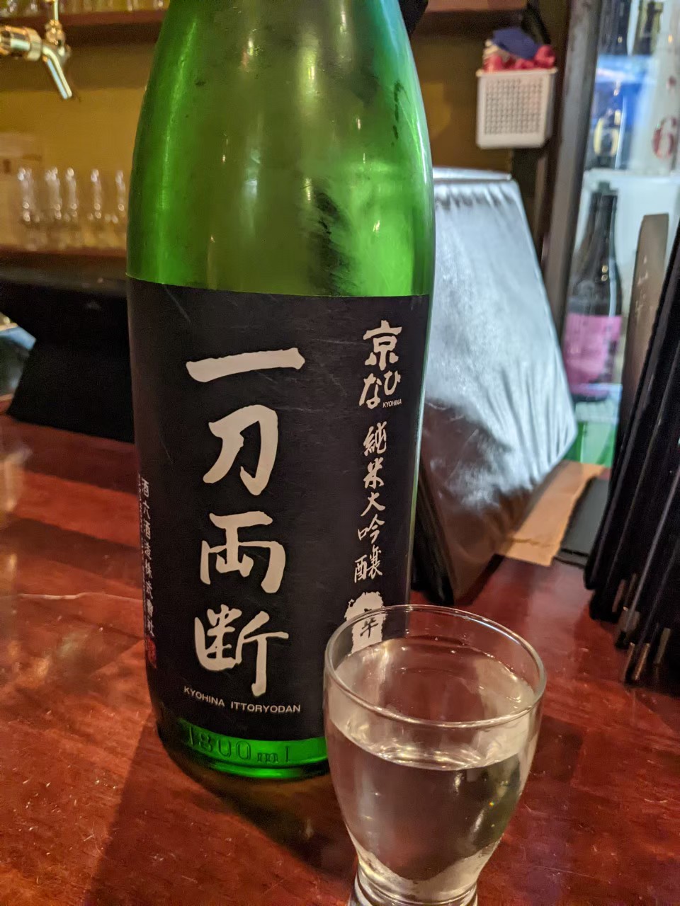 一刀両断 純米大吟醸辛口 磨き50% 愛媛県遠い所の國酒で有りまするよ〜『一刀両断』と言えば、武田鉄矢のラジオを思い出しまするが、、、開栓してみます、立ち香大吟醸にしては、、、。て感じ無いですよ〜、含むと、今流行りの大吟醸じゃないよ〜てオチャケが言ってますね〜、バナナ🍌風味が後口に来る感じですが、常温に戻るに従って、スイスイいけて、辛口たる由縁ですか?日本酒度+8と有りまするが、そこまで辛口と感じられませんね〜(^_^*):