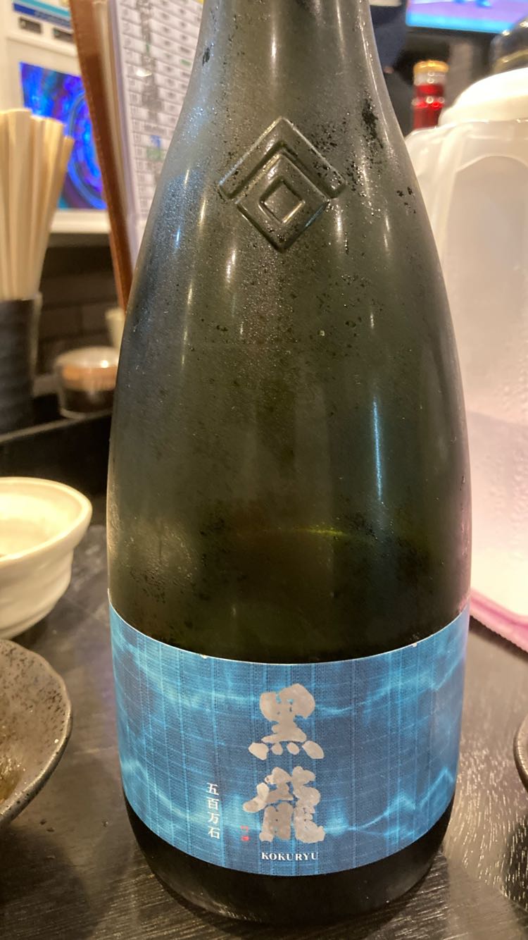黒龍吟醸です。写真の使い回しでスイマセン。スッキリの相変わらずのお世話になっている味、なのにこの前に飲んだ香り系吟醸の方が良かったかな?なんて思いつつ、スッキリ爽やか系の美味しいお酒でした。一個前のお酒が香り高かったので、少々物足りなく感じたり…。好み変わりそう。