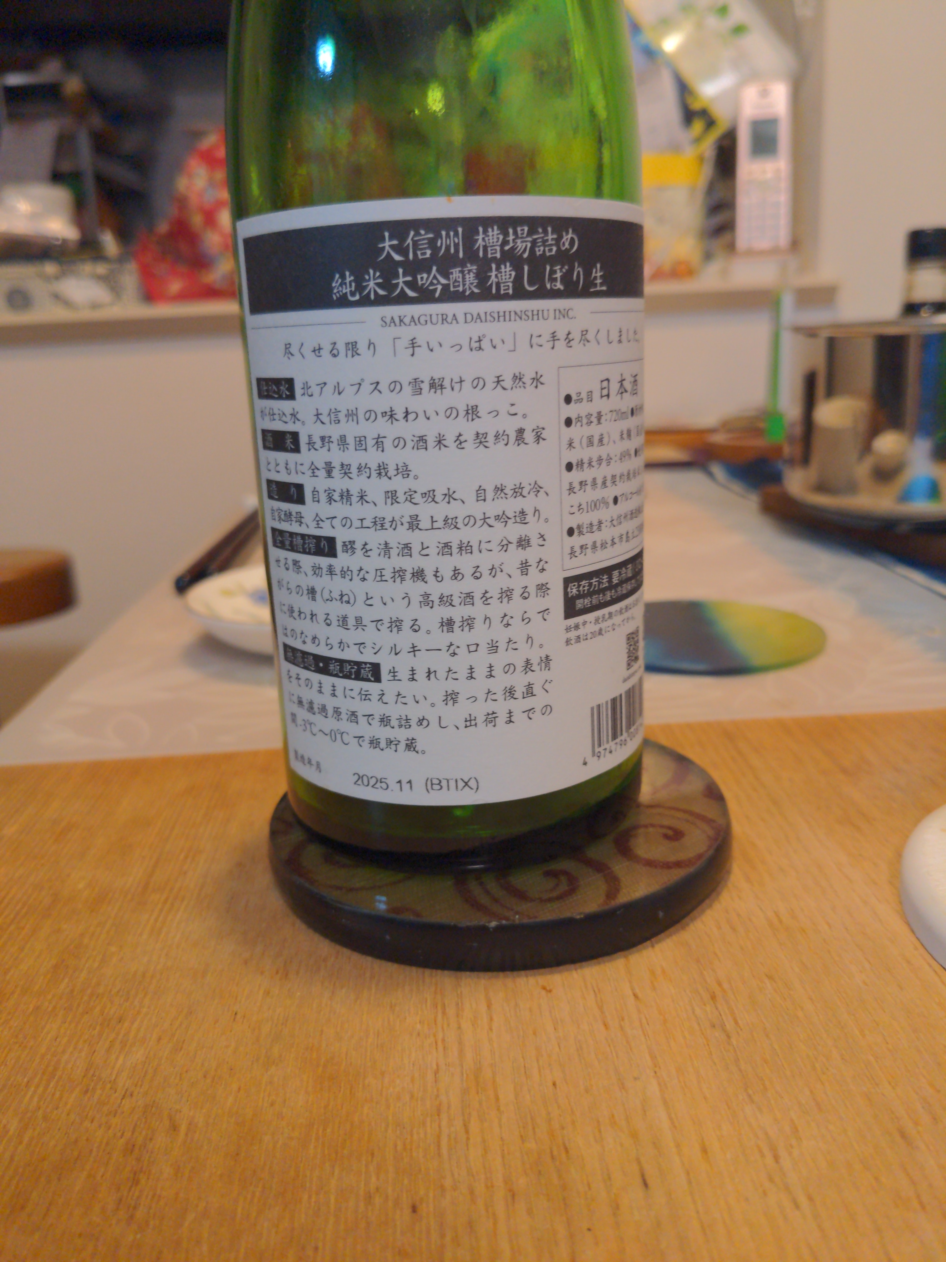 東御の宿泊先で夕食時に注文し、美味かったので土産にもする。香りは本当に良い。スッキリした飲み口で芳醇な味のバランスが最高。
