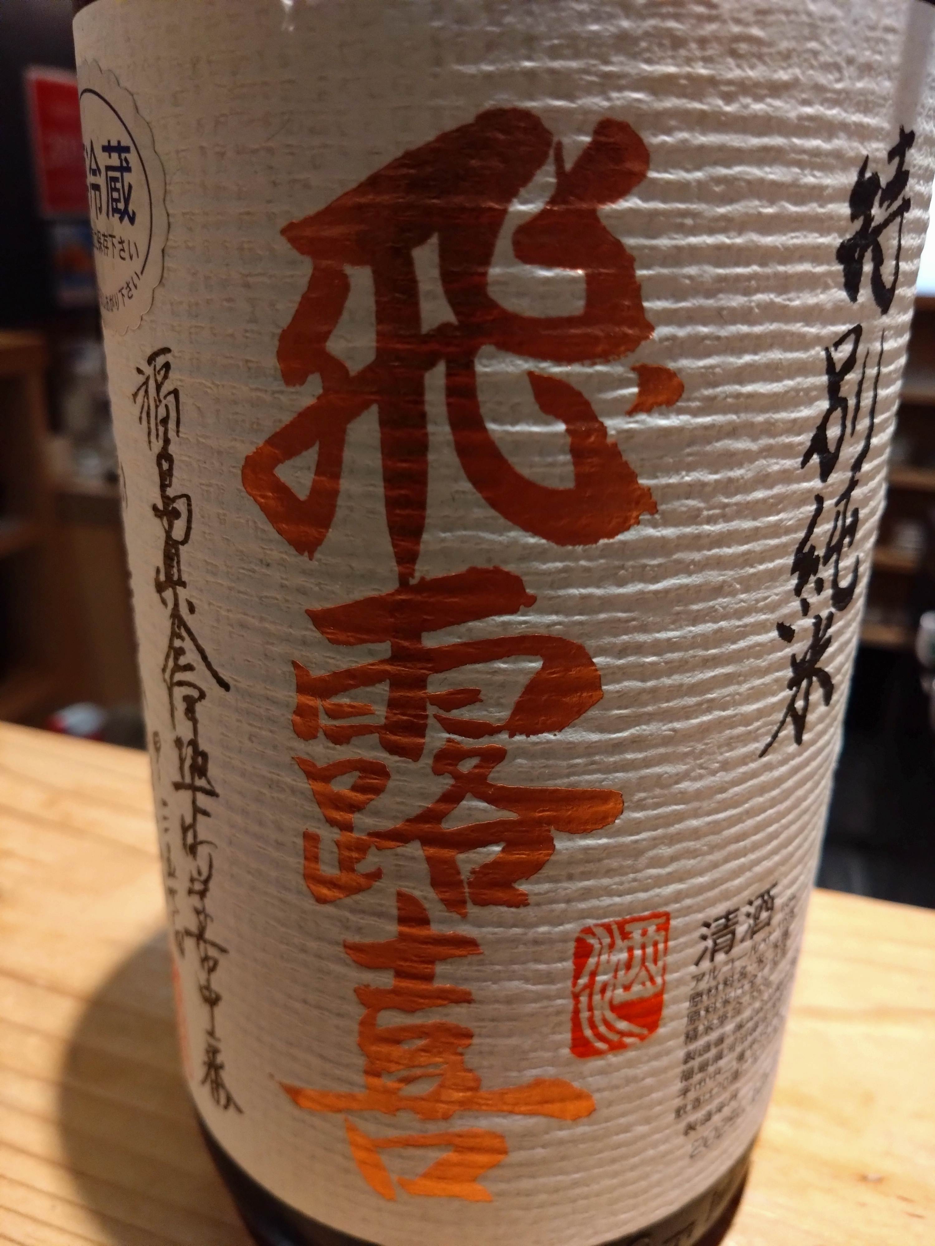 黒ラベルの飛露喜。純米吟醸。なんか高級なメロンっぽい味わい。