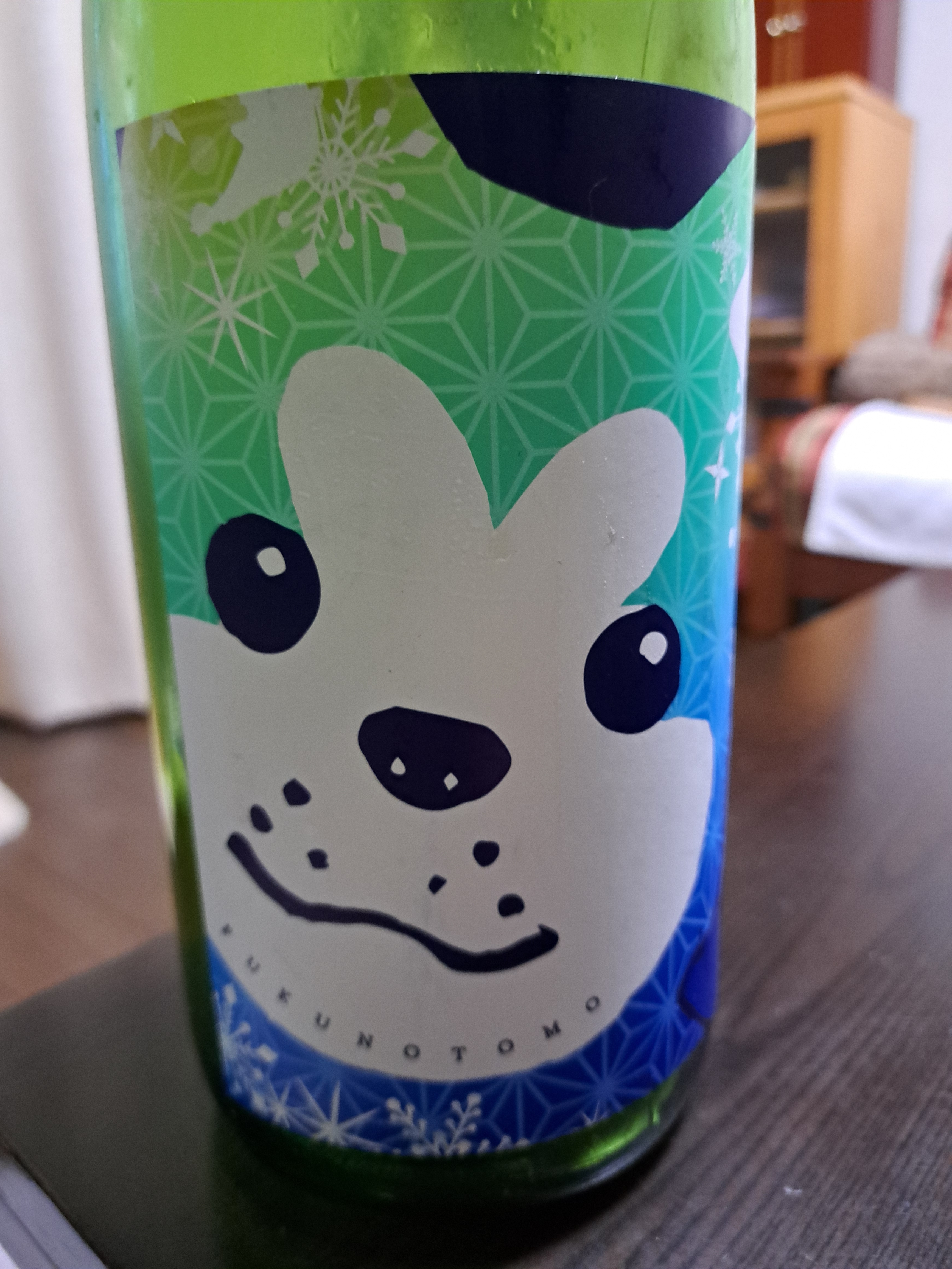 秋田犬ラベル純米吟醸生酒ー辛口でさっぱりしていてやや癖のある美味しい酒です。