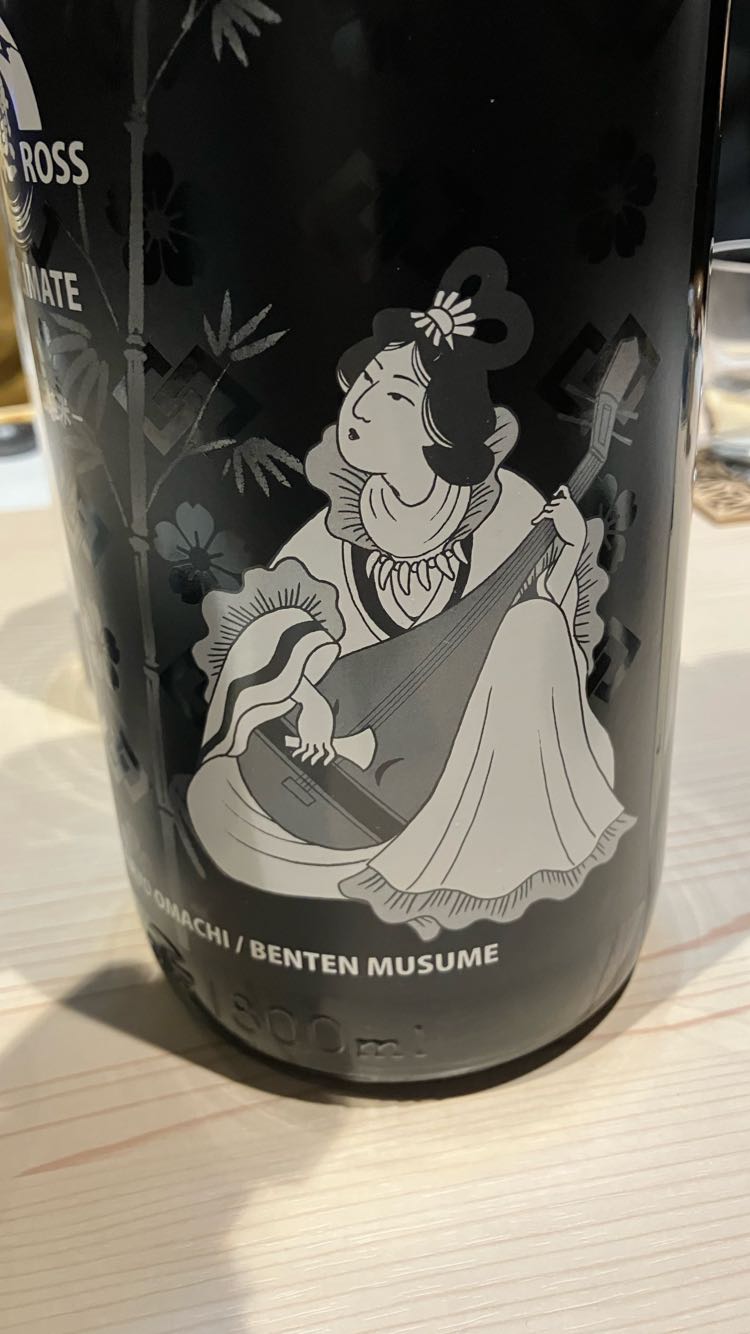 「辨天娘 青ラベル」香りはほのかに甘み旨みを感じる香りです。飲み口はシットリで旨みがズンときます。等級外の端米を使って純米酒と同じ造りだそうですが、普通酒になるそうです。御燗にするとさらに旨みが増します。