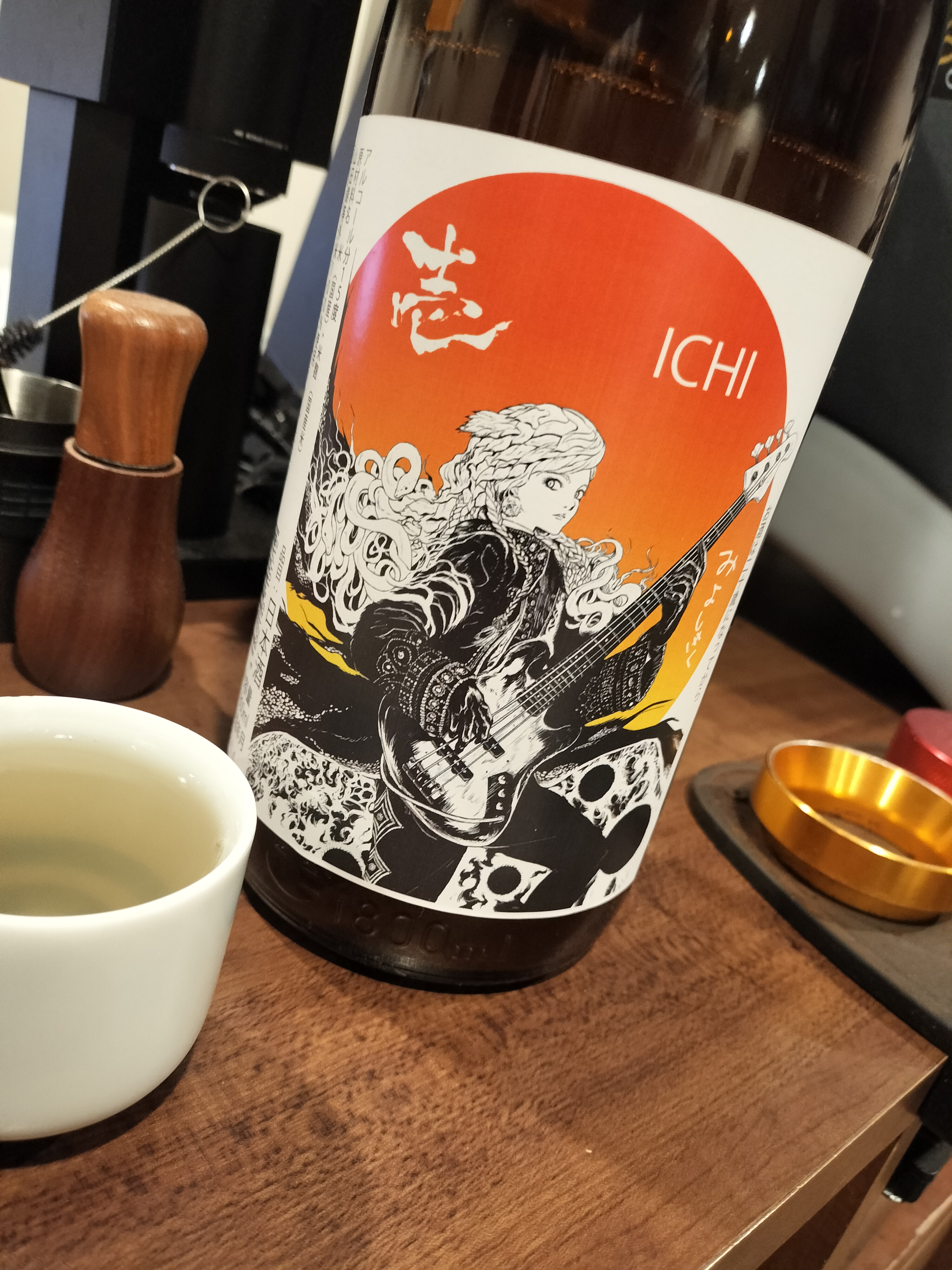 お猪口で飲めば熟れたリンゴジュースそのものであった。琥珀色に反して熟成の要素は無い。蜂蜜、微かにキノコ、シダ、酸も生き生きしてるけどお酢に通じ尖りもある。この前の玉旭系かな?とワイングラスで探ると大当たり!ゴーダチーズ、カスタードプディング、カシューナッツ、レーズン。香りが複雑で色気があるし含めばバニラ乗せたアップルパイ。字数の関係で燗は省くが大ぶりのワイングラスで飲むべき規格外の一本。