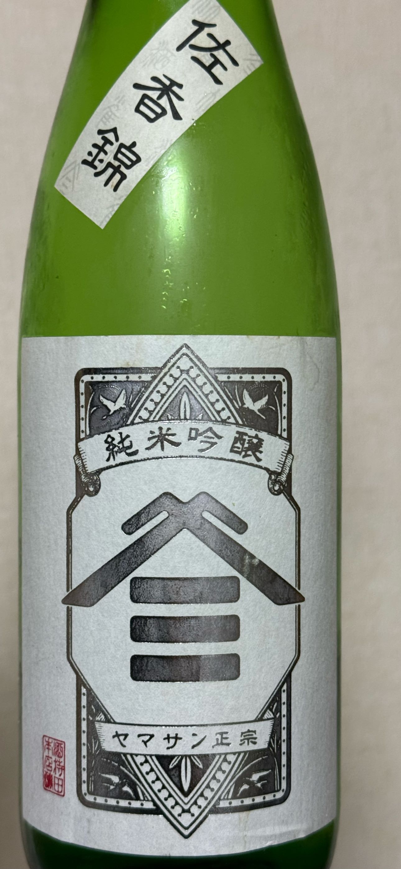 佐香錦なる神様の酒米を60%磨いた純米吟醸酒〜❗️肩貼りの酒米名、、、良く良く見る👀とヤマサンの屋号が透かし文字にて印刷されて居りまするな)^o^(
