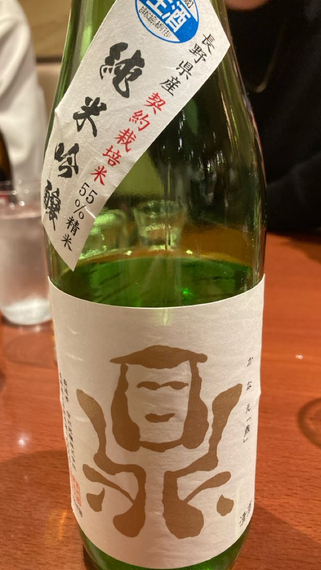 純米吟醸、生酒。日本一の超軟水、黒曜水を仕込み水に使用しており、辛口だが、まろやかさが高級感と甘みを感じさせる。